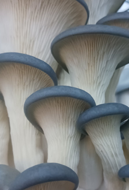 Blue Oyster Mushrooms are rich in Vitamin B, C and D. They have a mild (some say seafood) flavor that goes well in any dish that calls for mushrooms. Their fragile caps are ideal for soups, stews, stir fry and gravy.