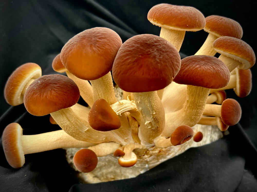 Pioppino mushrooms are a good source of unsaturated fatty acids and Vitamin E. Their traditional looking caps are fragile, while their stems are crispy–similar to asparagus. Pioppino mushrooms have a nutty, buttery smell and flavor that make them ideal for soups, stir-fries, roasting, and mincing into gravy or dips.